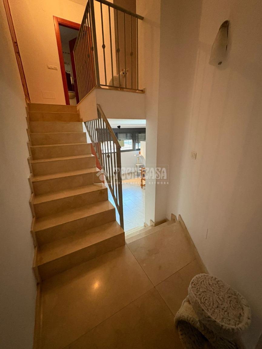 La vivienda cuenta con otras escaleras de acceso desde el recibidor las cuales nos llevan a una habitación y sale a una amplia terraza exterior que cuenta con los cimientos colocados para poder construir ahí otra vivienda si se desease con posiblidad de levantar otra terraza exterior por encima.